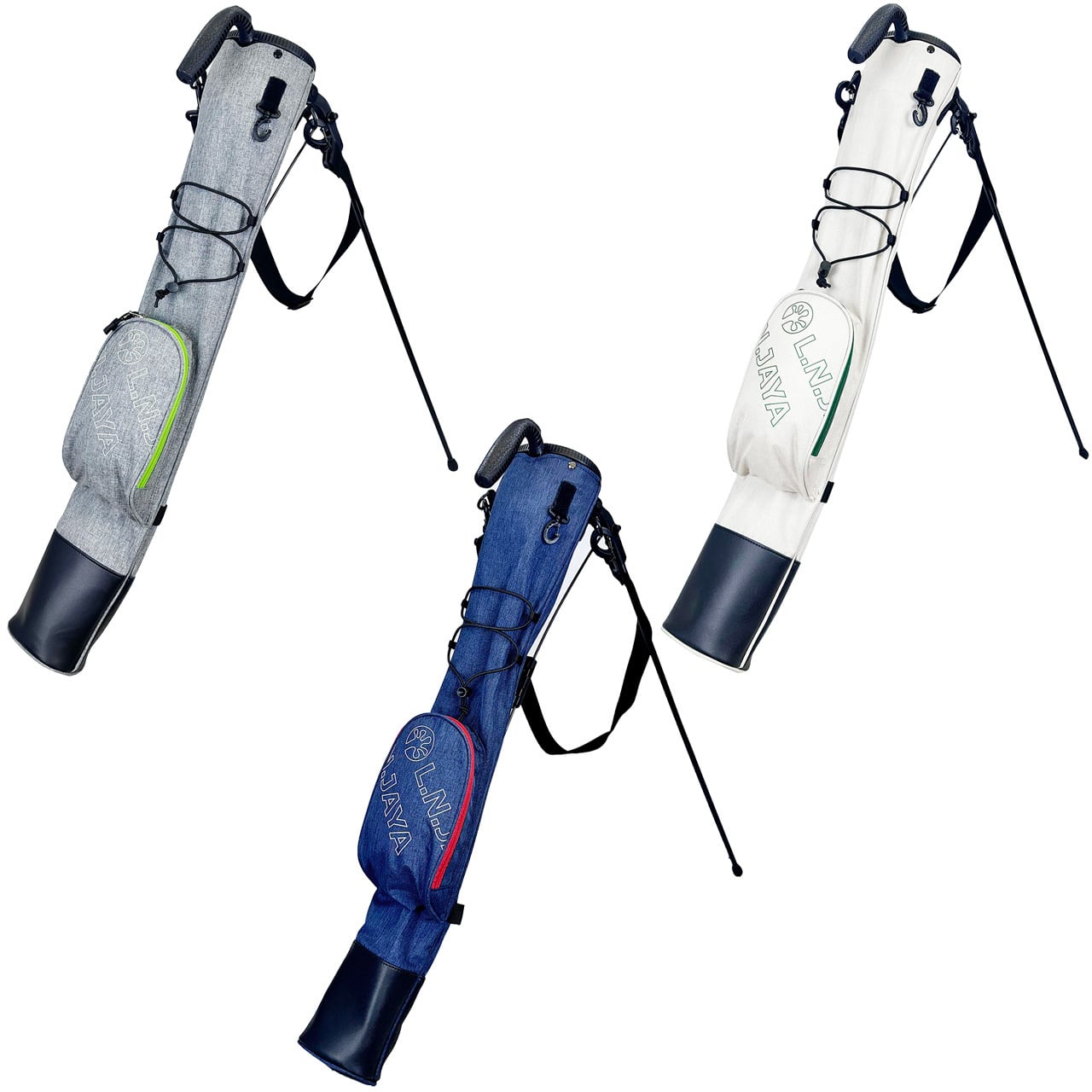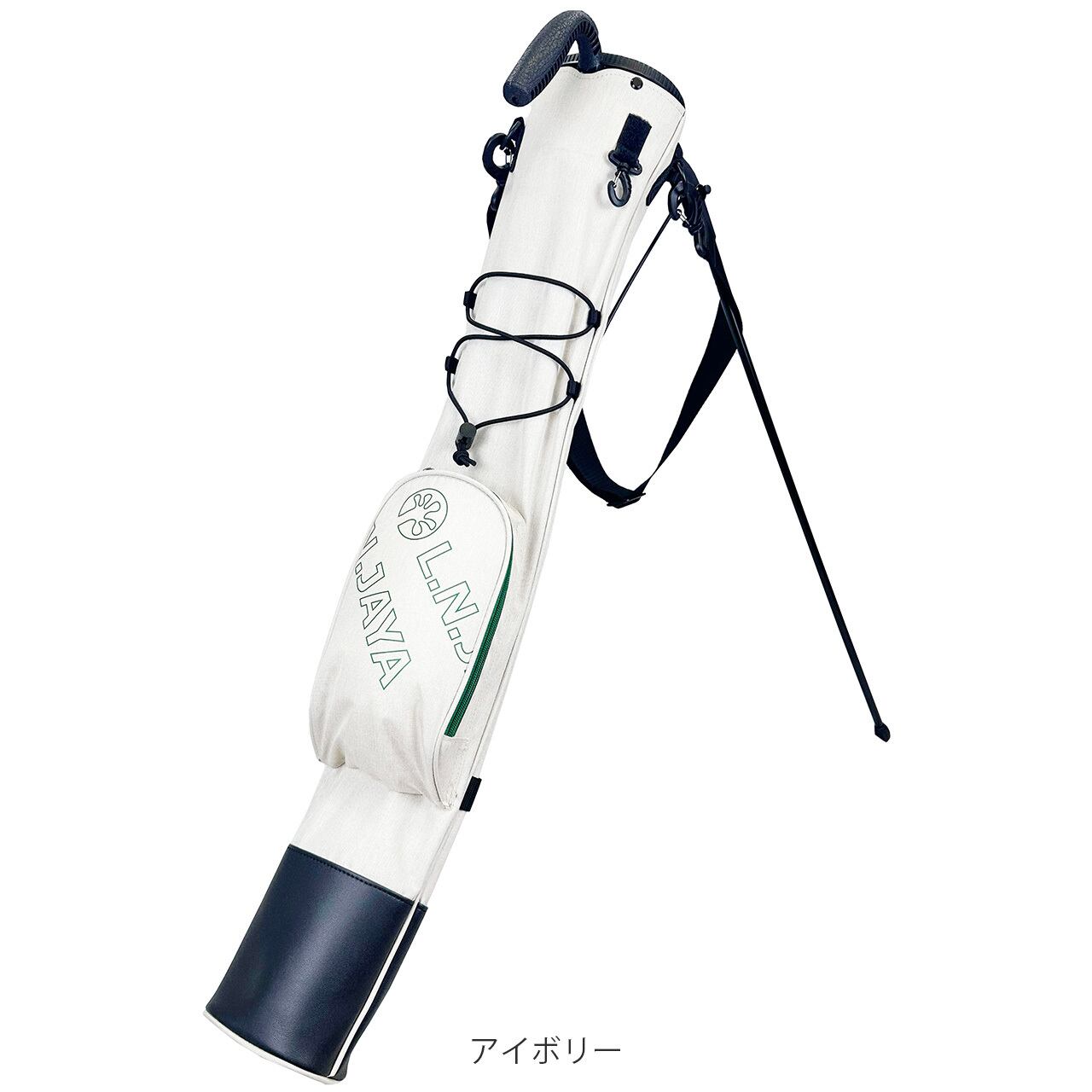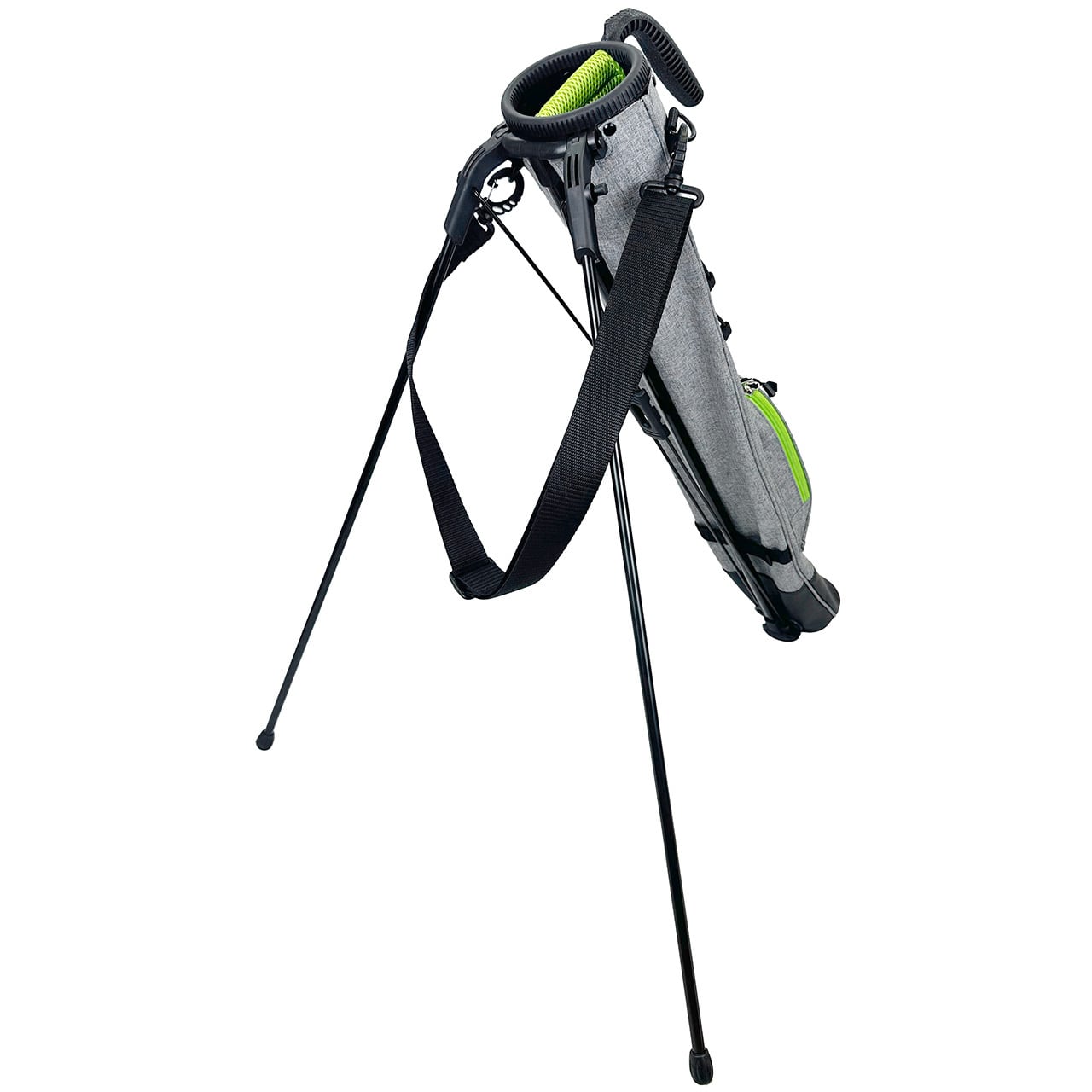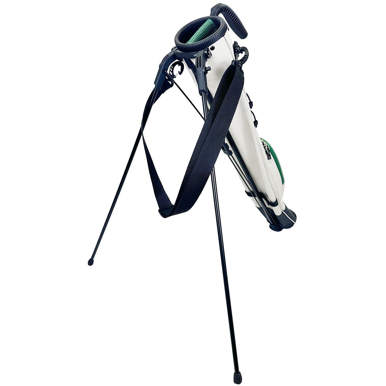 練習場、ラウンド中のグリーン周りでの使用で便利なスタンド付きのクラブケース。